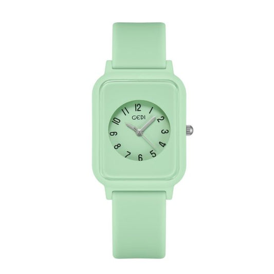 Silky Soft Strap Silicon Watch In Aesthetic Colors / Square Case Round Dial Watch Without Box (random Color)