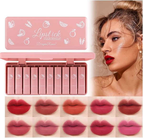 - 10 Colors Lipstick Set – Including 10 pcs lipstick. Delivers a gorgeous, lightweight matte color.